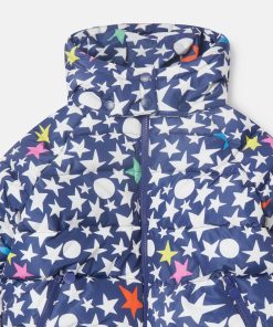 Stella McCartney Kid’s Girls (2–14 Years) Star Print Hooded Puffer Coat | Blue & Multicolor