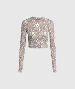 Stella McCartney Women’s Adidas Truepurpose Training Snake Print Long-sleeve Cropped Top | Beige