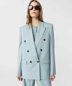 Stella McCartney Women’s Ready To Wear Double-breasted Pinstripe Blazer Mini Dress | Gray