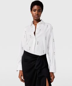 Stella McCartney Women’s Ready To Wear Lead-free Crystal Embellished Oxford Shirt | Pure White