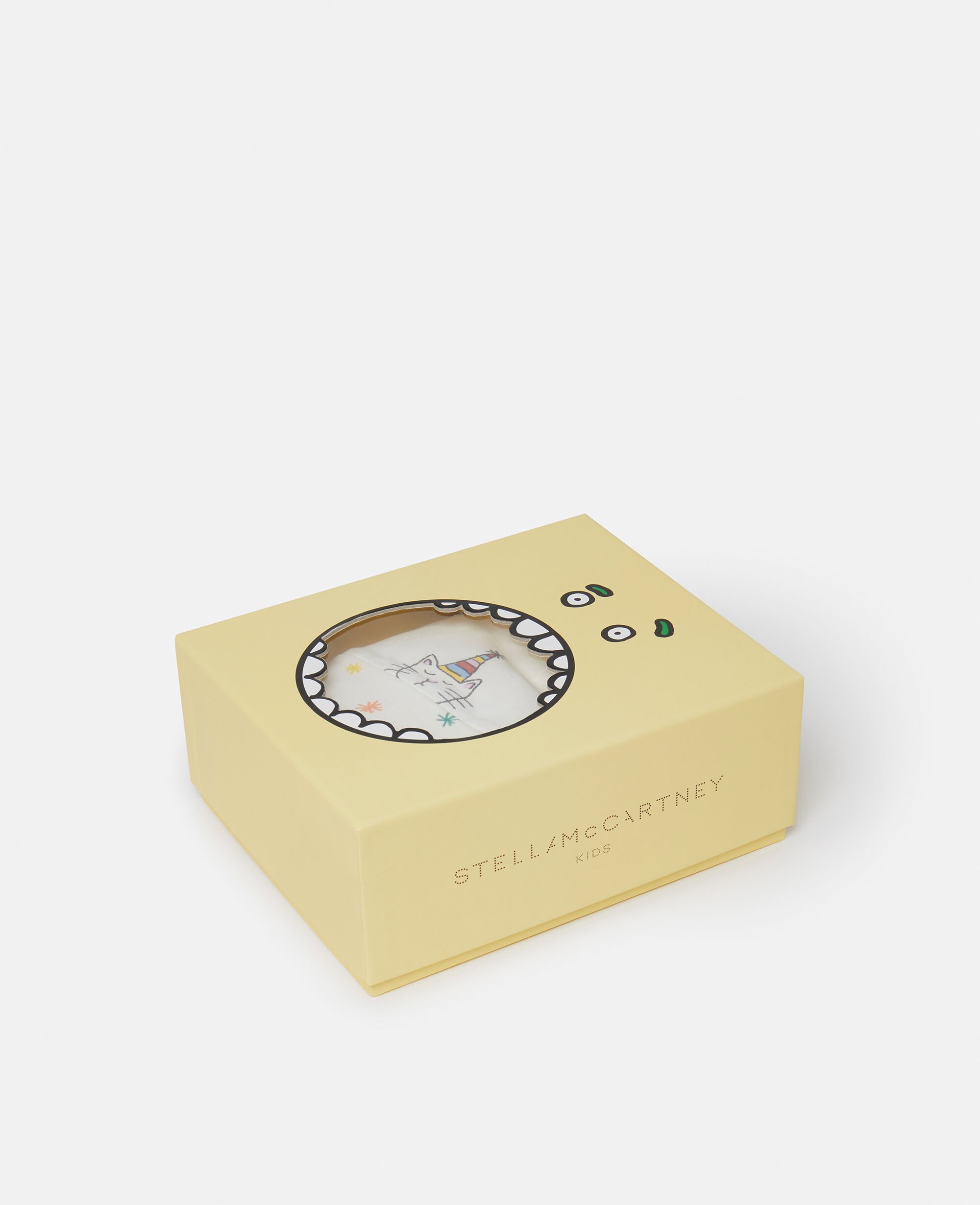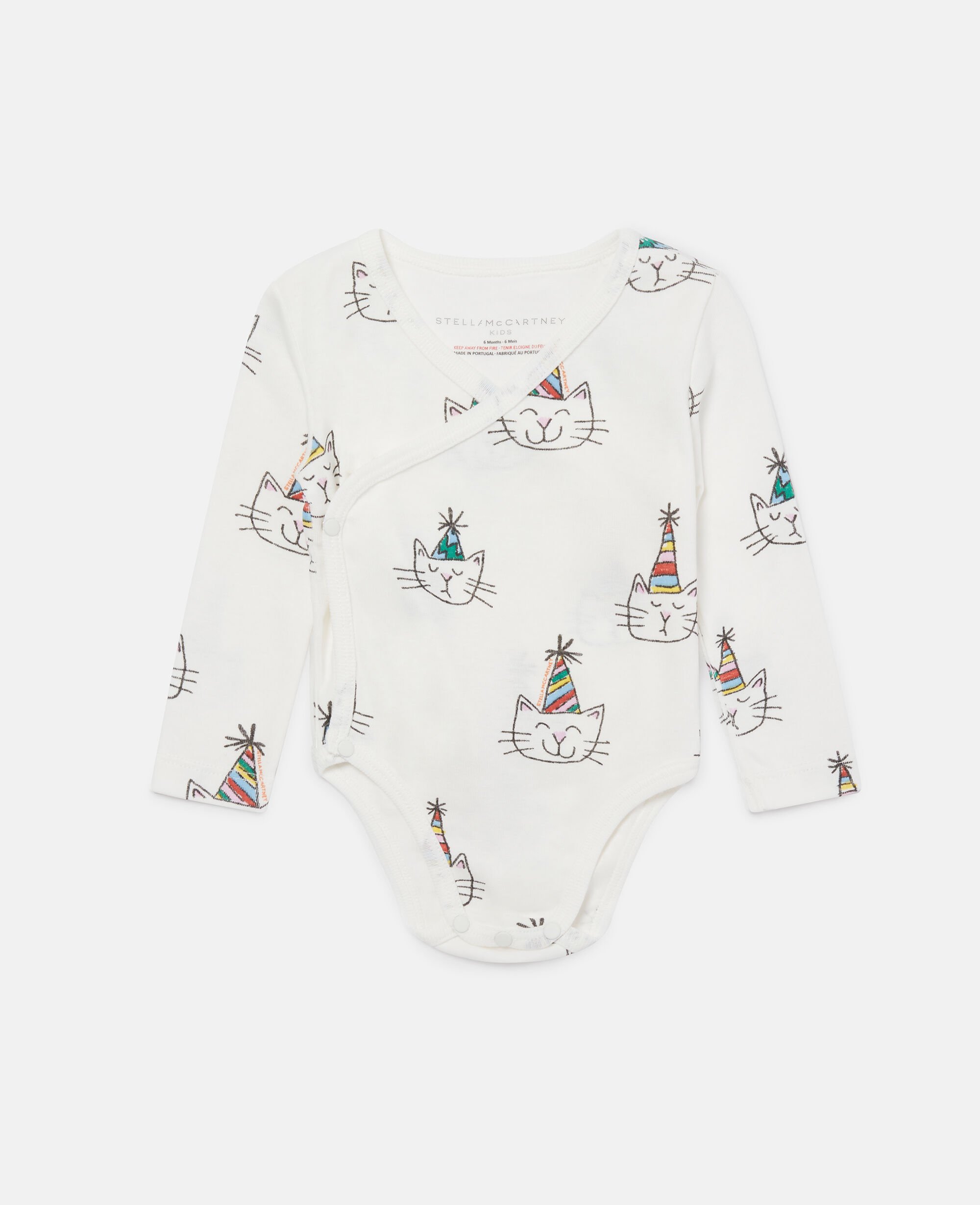 The Stella Kids Spring Summer 2025 collection playfully shows the next generation that animals are friends, not fashion. The season’s funny, feline face is printed on this soft, organic cotton romper set.