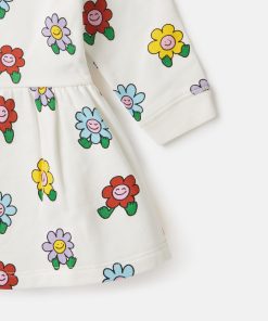 This long-sleeve dress is made from soft organic cotton jersey. For Fall/Winter 2025, Stella McCartney Kids is inspired by the love we have for our one shared home – Mother Earth. Smiling flowers, hearts and other earthy friends beam across a collection crafted from 96% conscious materials.