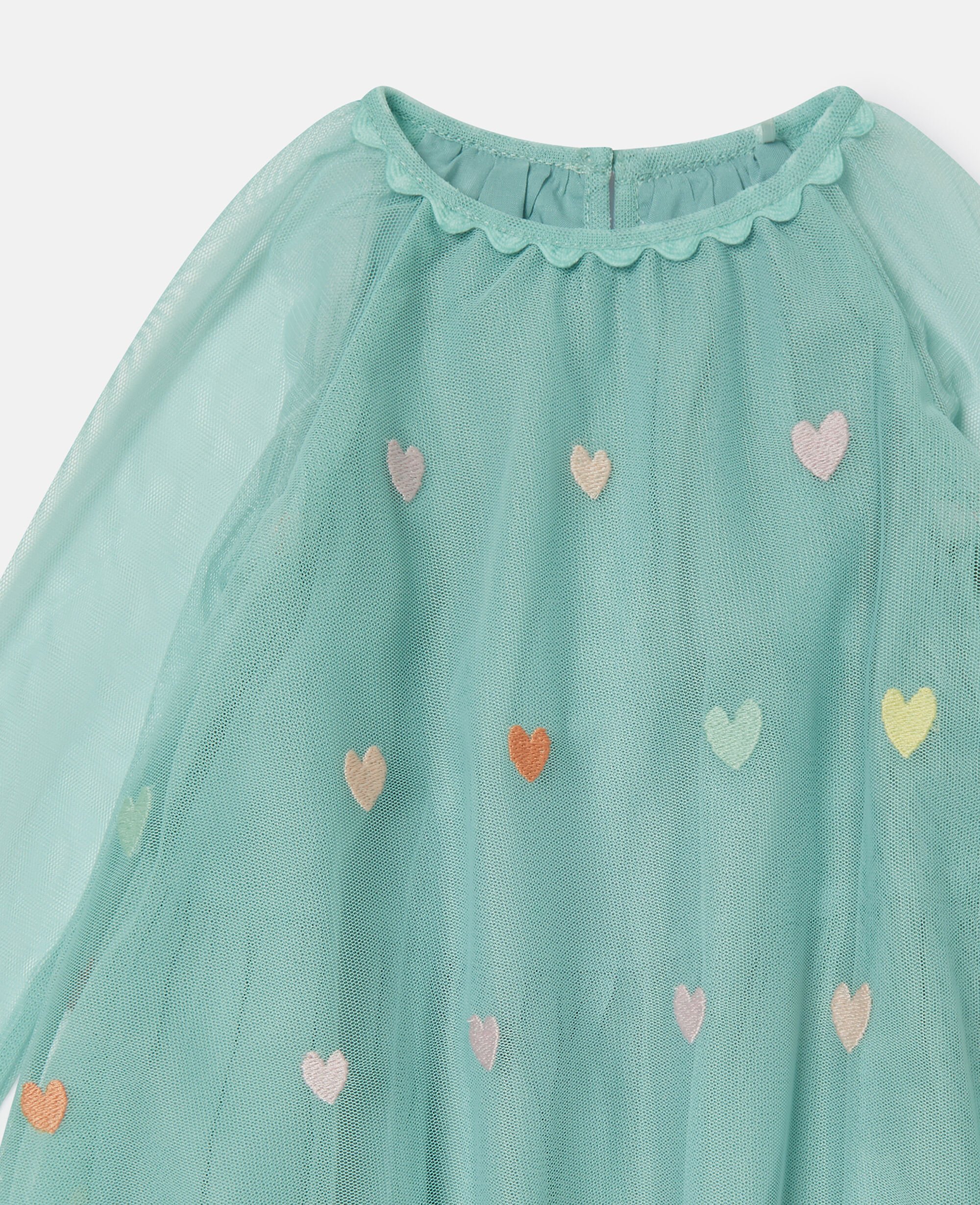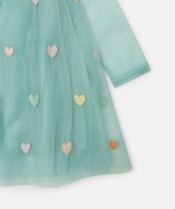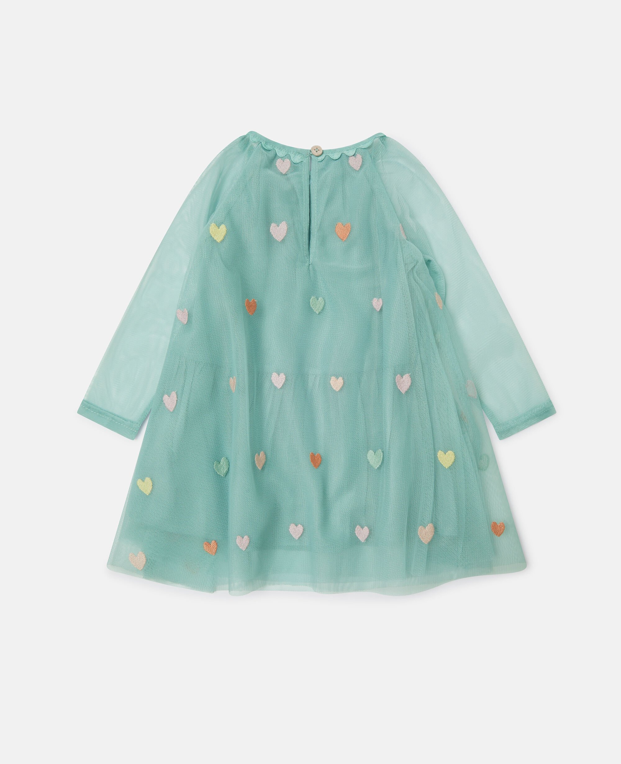 Playful patterns and prints are a Stella McCartney Kids signature. Beaming joy in our latest sustainable luxury childrenswear collection, this dress is crafted from super soft recycled materials with hearts embroidered all-over. Topped with tulle layers, it is both a Stella Kids fashion statement and staple.