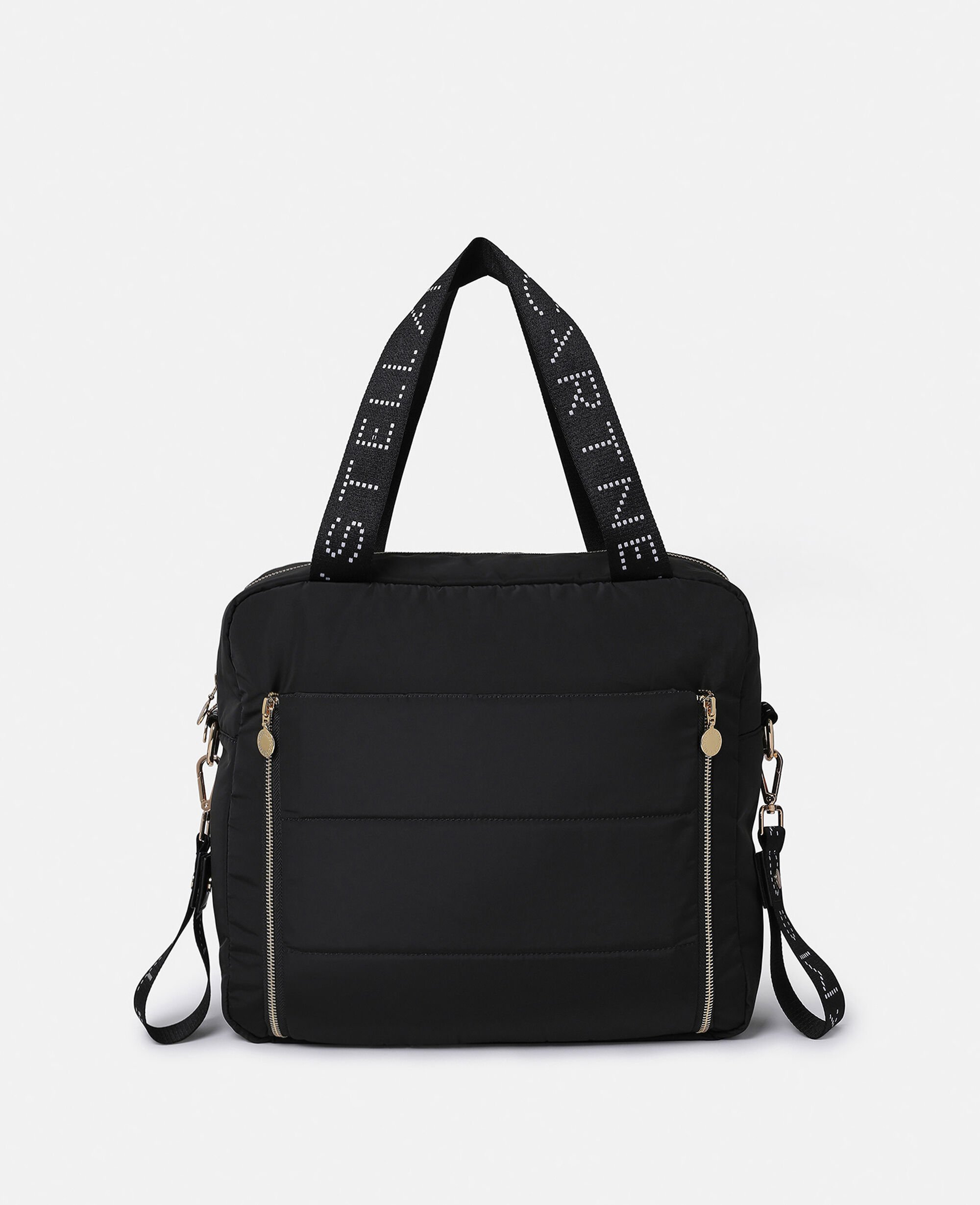 The Stella McCartney logo playfully blends style and sustainability for the next generation of eco-warriors. Exemplifying the joyful conscious luxury we stand for, this changing bag is crafted from recycled materials and trimmed with moniker-patterned taping.