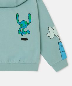 This zipper-up hoodie is made from soft organic cotton. For Fall/Winter 2025, Stella McCartney Kids is inspired by the love we have for our one shared home – Mother Earth. Smiling flowers, hearts and other earthy friends beam across a collection crafted from 96% conscious materials.