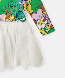 This dress is made from a stretchy blend of recycled nylon. For Fall/Winter 2025, Stella McCartney Kids is inspired by the love we have for our one shared home – Mother Earth. Smiling flowers, hearts and other earthy friends beam across a collection crafted from 96% conscious materials.