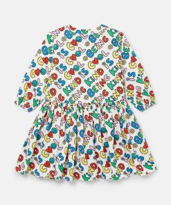 This dress is made from a soft forest-friendly-blend viscose jersey. For Fall/Winter 2025, Stella McCartney Kids is inspired by the love we have for our one shared home – Mother Earth. Smiling flowers, hearts and other earthy friends beam across a collection crafted from 96% conscious materials.