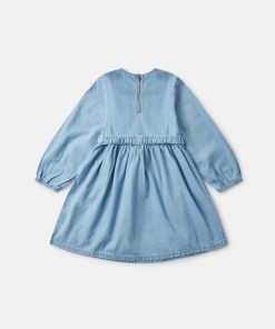 This long-sleeve dress is made from soft organic cotton denim. For Fall/Winter 2025, Stella McCartney Kids is inspired by the love we have for our one shared home – Mother Earth. Smiling flowers, hearts and other earthy friends beam across a collection crafted from 96% conscious materials.