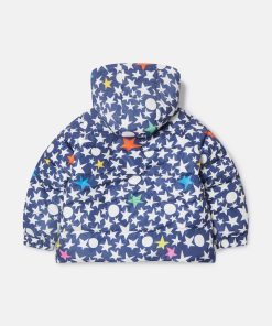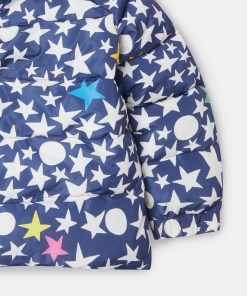 Stella McCartney Kid’s Girls (2–14 Years) Star Print Hooded Puffer Coat | Blue & Multicolor
