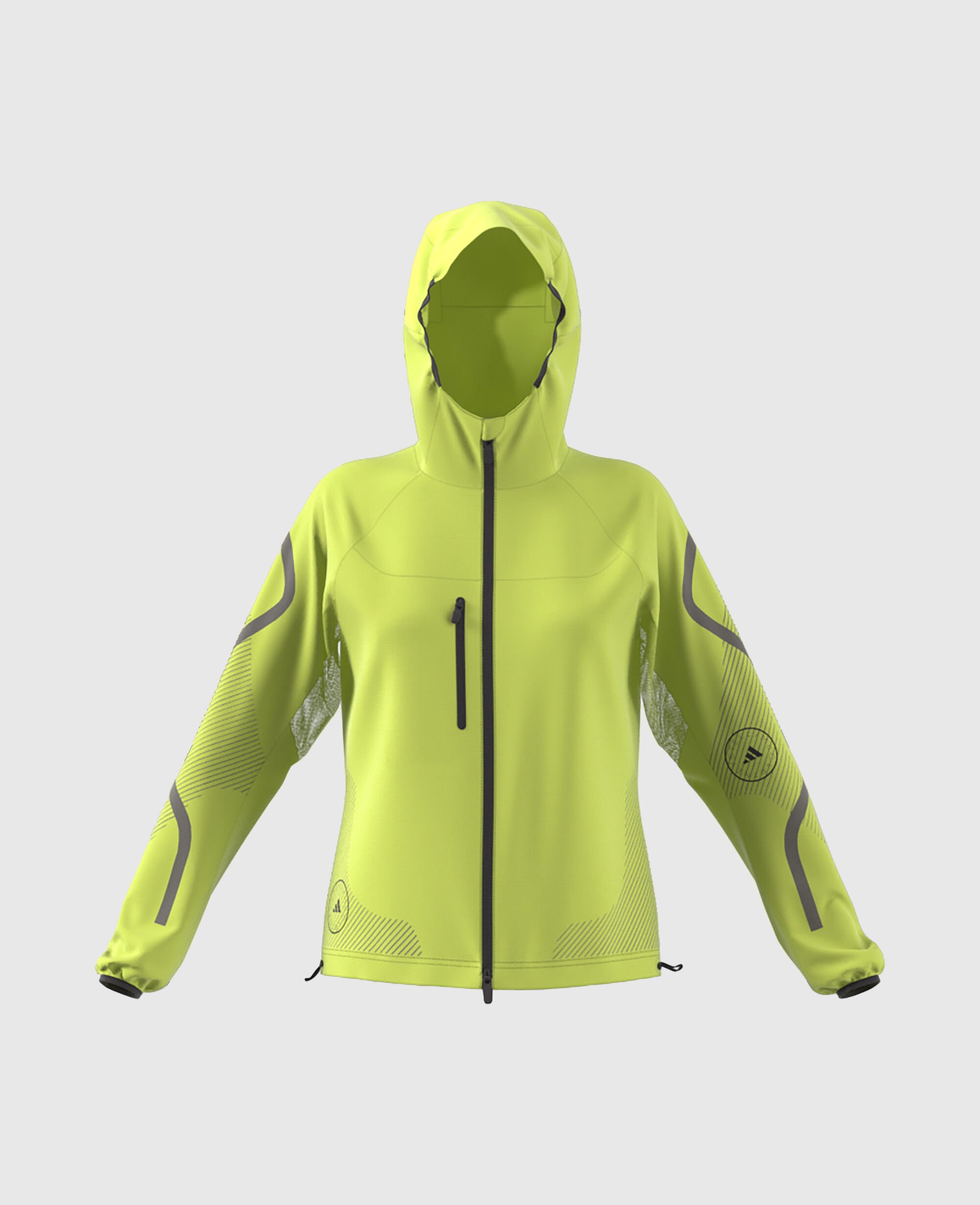 Inspired by the high vibrations of running, this TruePace running jacket is detailed with decorative cutlines and features subtly placed reflective panels for visibility. The jacket has a chest zipper pocket to easily store essentials without getting in the way of optimum movement.
