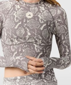 A neutral color palette and sharp cutlines gives this long-sleeved training top a high-vibration feel. The gym top is crafted from adidas’ Primegreen fabric, made with 73% recycled materials, detailed with striking paneling all-over and an iconic snake print.