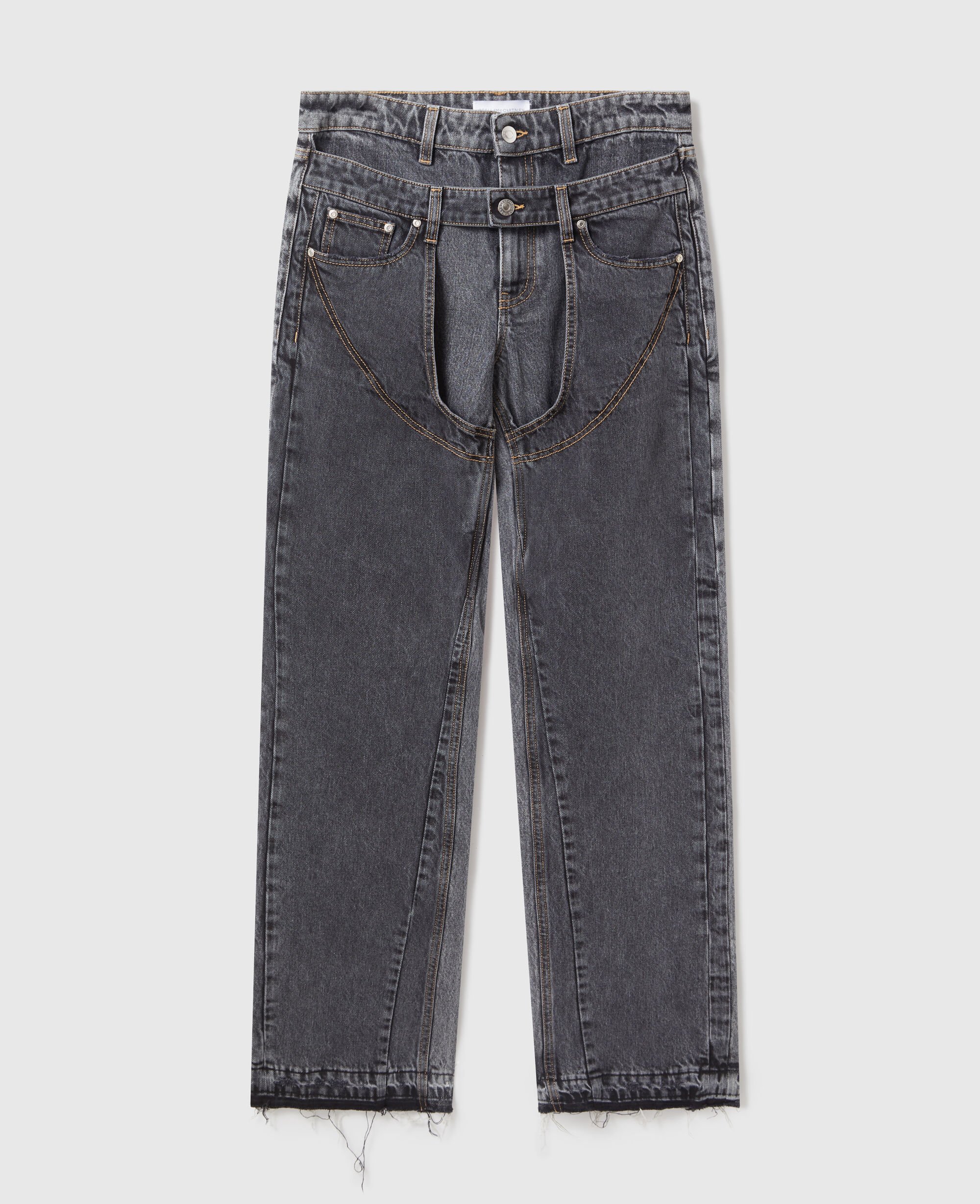 These organic cotton denim jeans reimagine iconic Stella McCartney chaps – cut to a mid-rise, straight-leg silhouette accented with two-tone panels, a double waistband and distressed details. Pair them with the coordinating jacket.