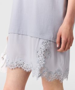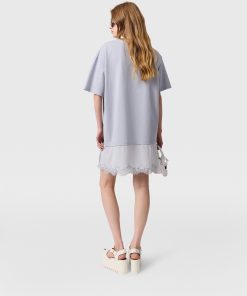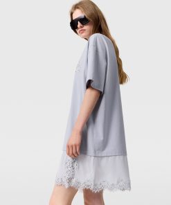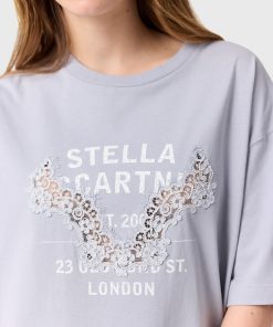 Sensual lingerie codes can be noted from Stella McCartney’s earliest collections to now. For Fall 2025, these inspirations appear in slinky numbers like this t-shirt. Crafted from organic cotton, its boxy, crewneck silhouette is cut with dropped shoulders and organic silk lace embroidered at the chest and hem.