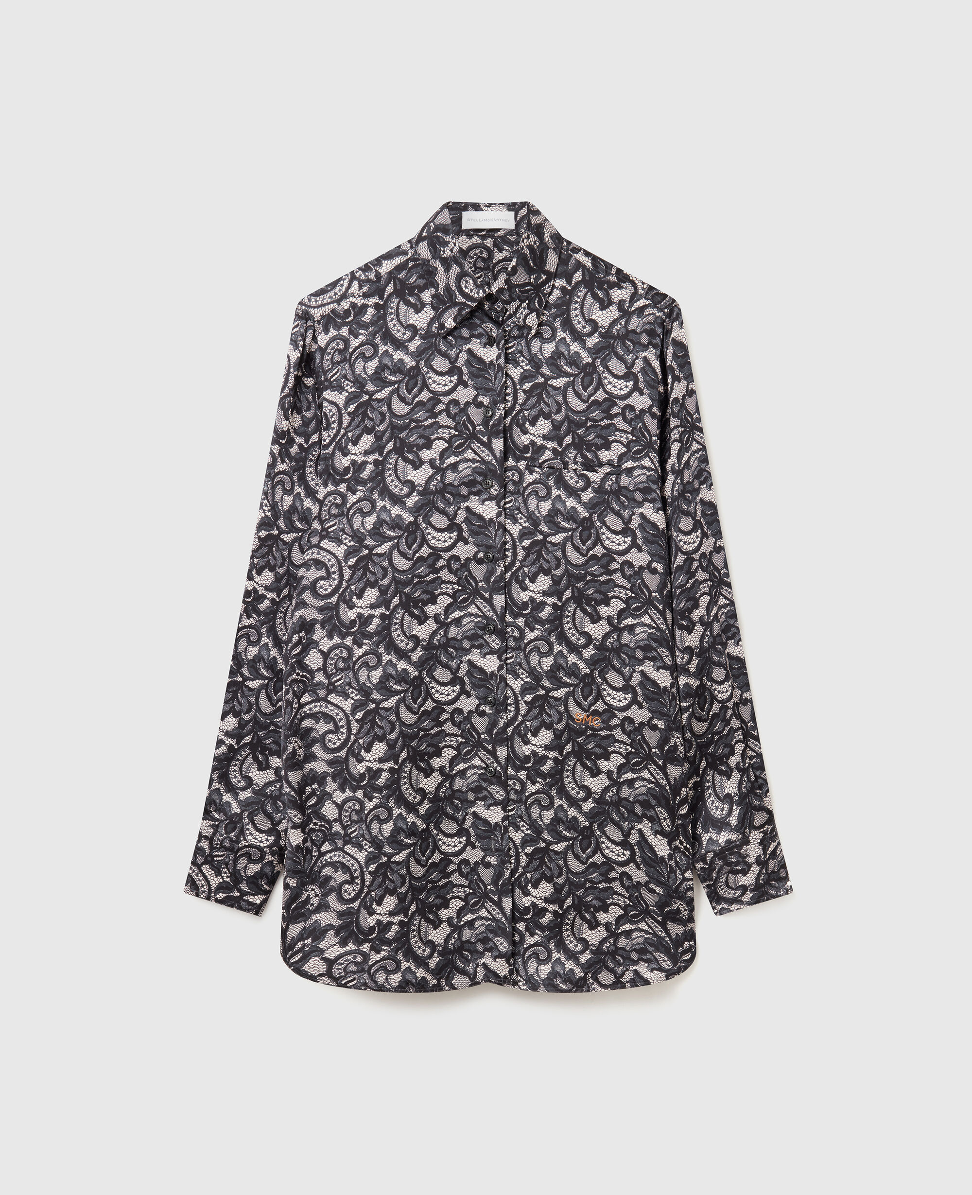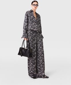 The daytime pajama set is reimagined seasonally by Stella McCartney, now in an all-over floral lace print. Spun from fluid forest-friendly viscose satin, the oversized silhouette of this shirt is topped with a pointed collar and tonal buttons. Pair it with the coordinating pants.