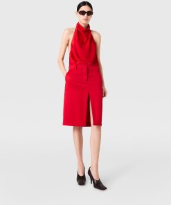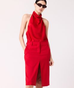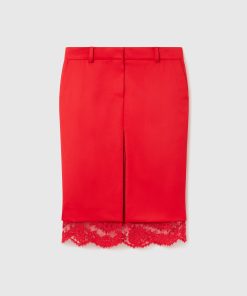 Spun from lustrous, forest-friendly viscose satin, this silky-smooth midi skirt begins with a mid-rise waistline. Topped with a floral lace trim, its tailored silhouette exemplifies the contrast between sensuality and structure seen in Stella McCartney’s Winter 2025 runway show.