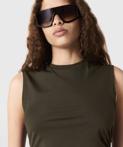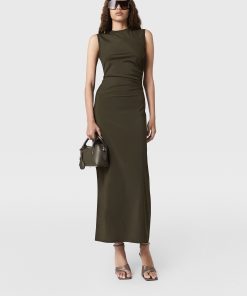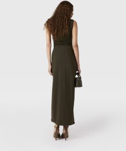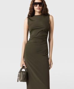Stella McCartney Women’s Ready To Wear Sleeveless Crewneck Twist Mesh Midi Dress | Dark Khaki