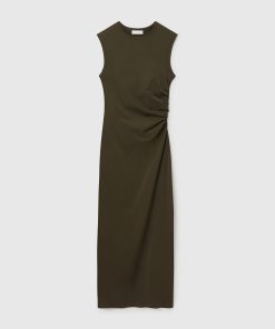 Stella McCartney Women’s Ready To Wear Sleeveless Crewneck Twist Mesh Midi Dress | Dark Khaki