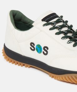 At Stella McCartney, every day is Earth Day. Our SOS Capsule celebrates the planet and sustainable materials, crafted from 100% conscious fabrics. Our most sustainable sneakers to date, Stella McCartney revisits the S-Wave trainer – with every component incorporating innovative alternatives. Inspired by vintage runners, the SOS-embroidered upper silhouette is crafted from panels of breathable mesh using recycled fibres and resting upon a lightweight, supportive recycled rubber sole. Slip them on with the coordinating t-shirt for off-duty activism. We will be making a donation to Conservation International, supported by sales of the SOS Capsule.* *Stella McCartney as a Group will donate a minimum of €15,000 from the sales of the SOS Capsule Earthy Day 2024 promotional venture made through Stella McCartney owned boutiques and stellamccartney.com to Conservation International – a U.S. non-profit, tax-exempted charitable organization (tax identification number 52-1497470) under Section 501(c)(3) of the Internal Revenue Code.
