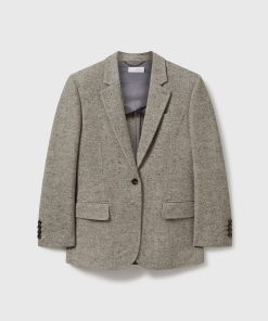 Stella McCartney Women’s Ready To Wear Single-breasted Herringbone Blazer | Gray Melange